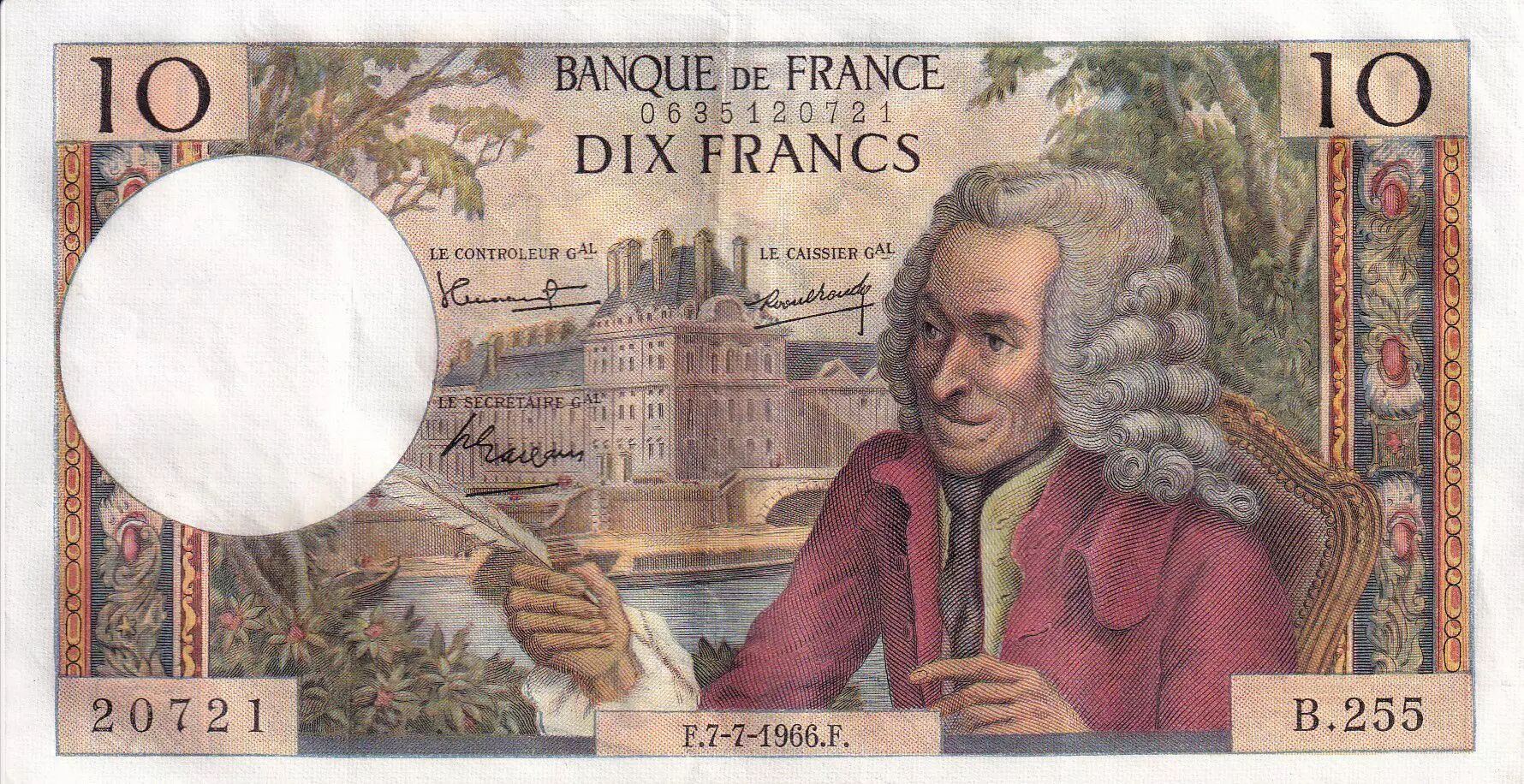 Accueil > Archivage > France 10 Francs - Voltaire - 07-07-1966 - Série B.255 - SUP - F.62.22