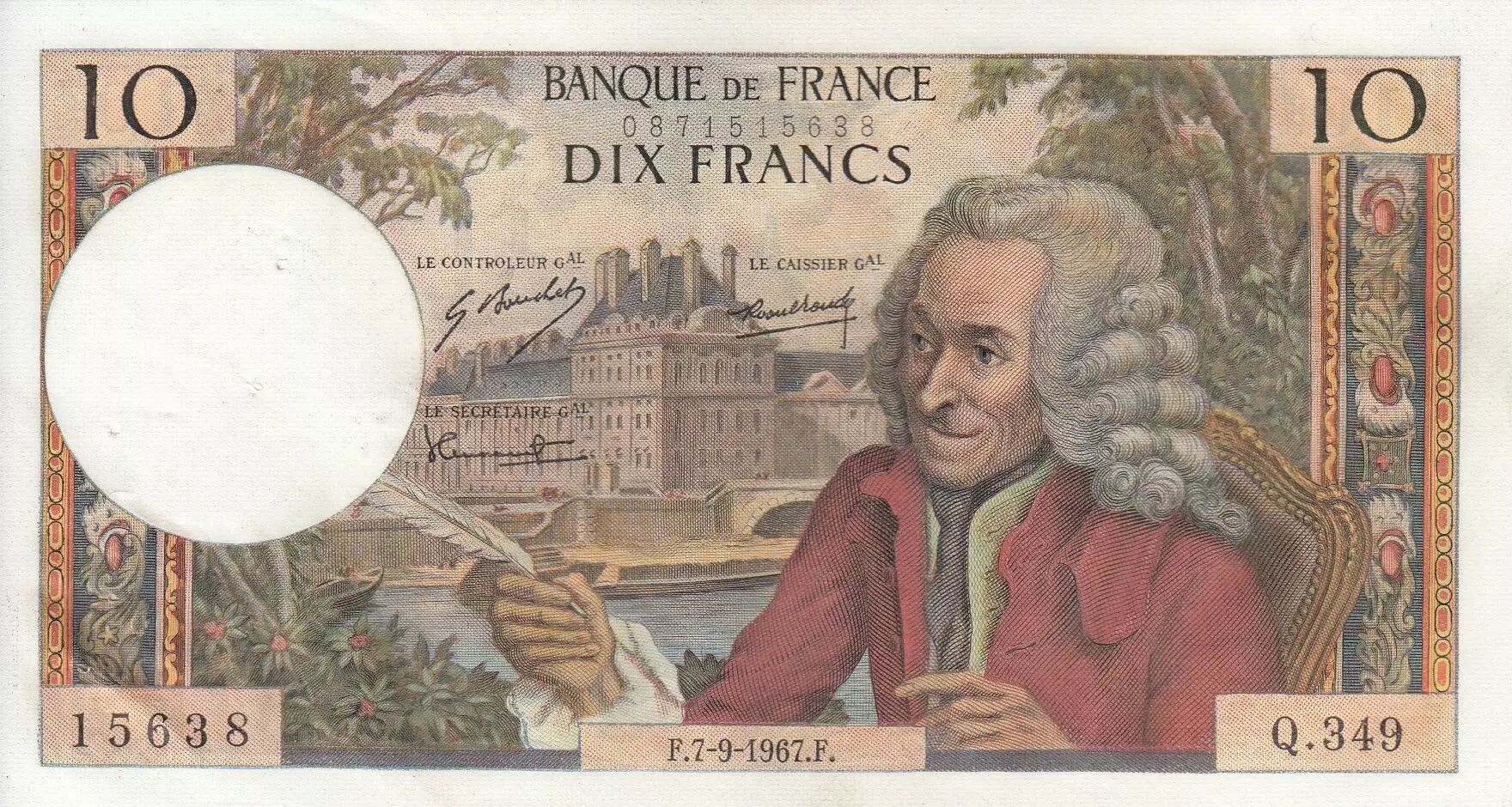 Le billet de 10 francs Voltaire de 1967, série Q.349, est un témoin de l'histoire monétaire française et un reflet des valeurs culturelles et intellectuelles de son époque. Il incarne une période où l'économie et la culture étaient étroitement liées dans la conception des moyens de paiement.