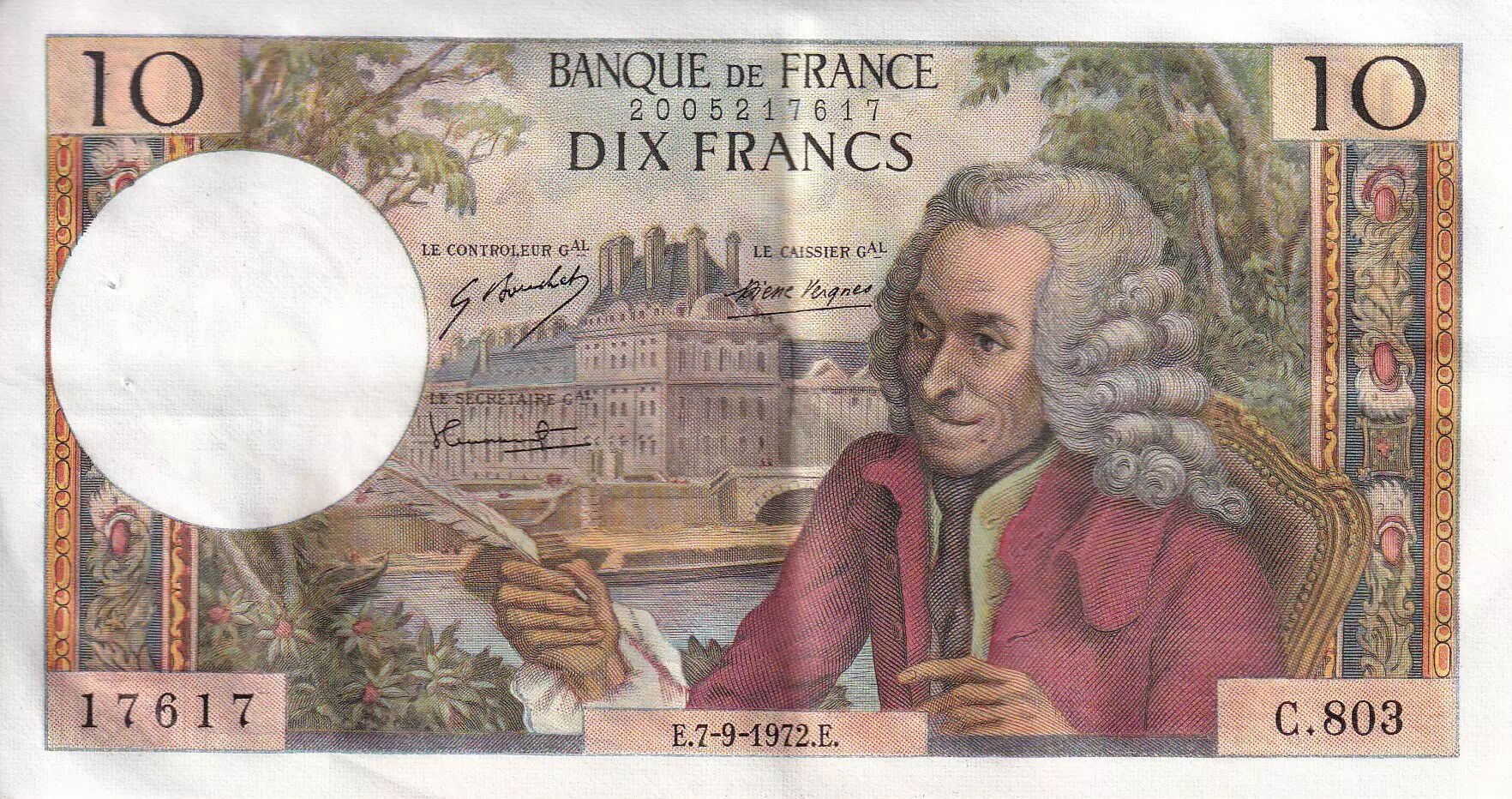 Home > > France 10 Francs - Voltaire - 07-09-1972 - Serial C.803 - XF - P.147