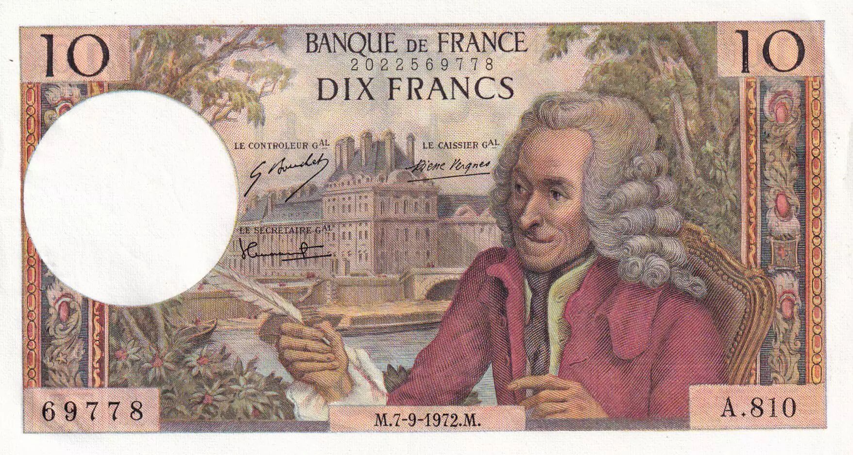 Accueil > Archivage > France 10 Francs Voltaire -07-09-1972 Série A.810 - SPL