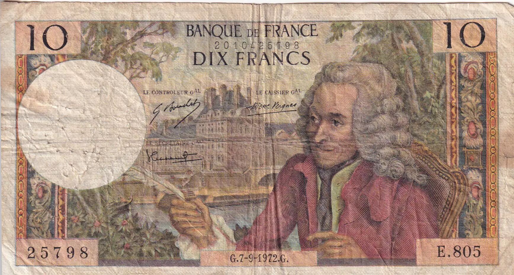 Accueil > Archivage > France 10 Francs - Voltaire - 07-09-1972 - Série E.805 - F.62.58