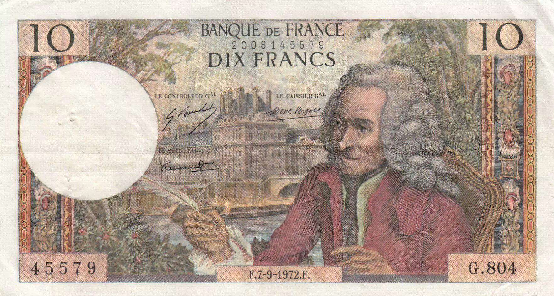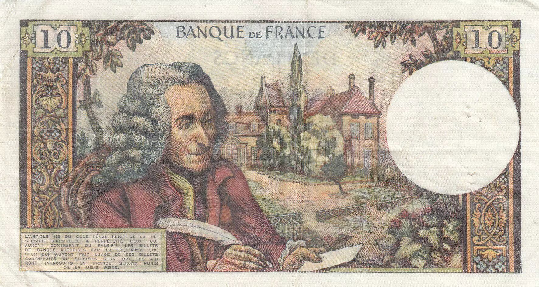 Accueil > Archivage > France 10 Francs Voltaire - 07-09-1972 Série G.804