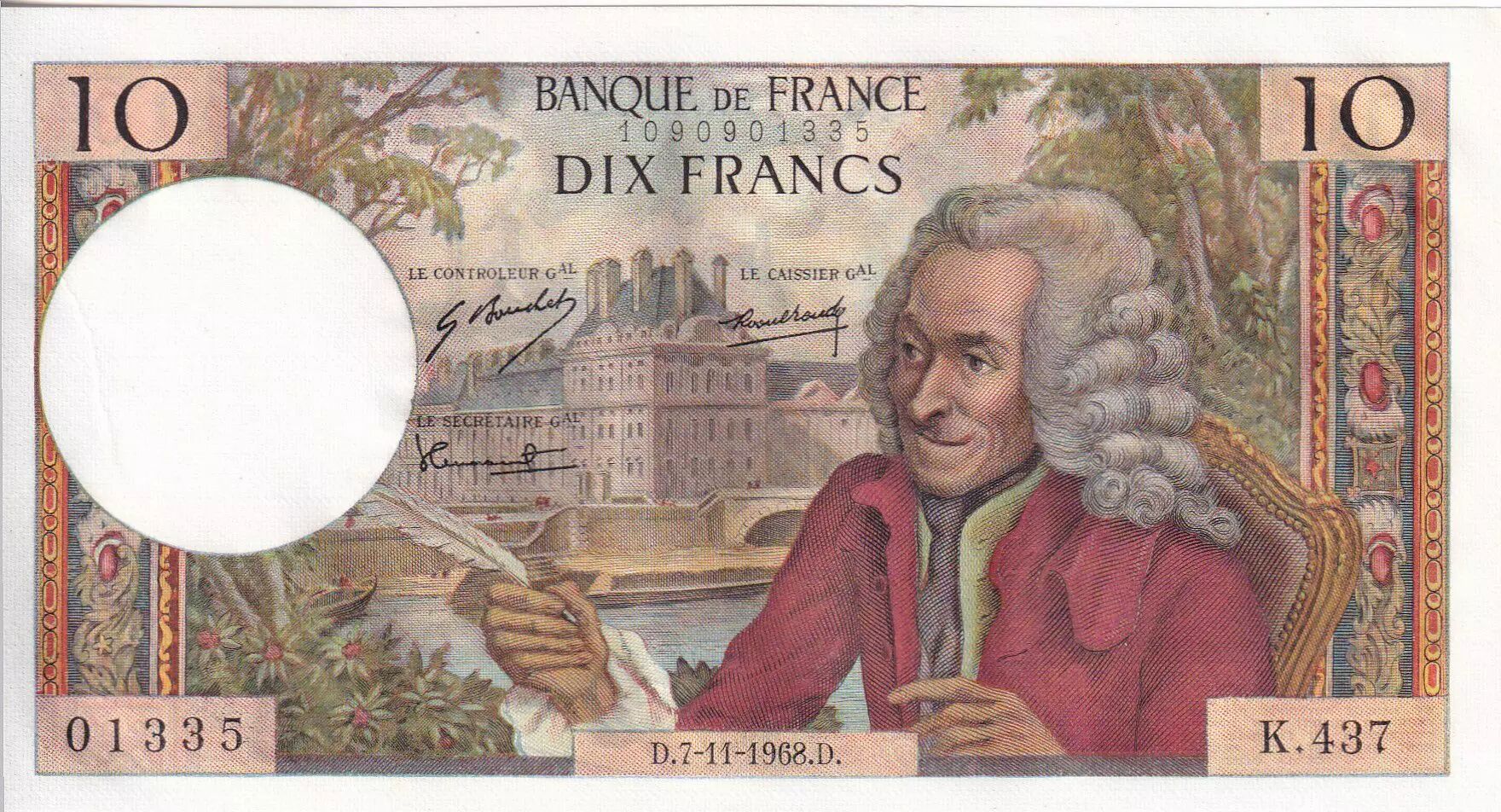 Home > > France 10 Francs - Voltaire - 07-11-1968 - Serial K.437 - P.147