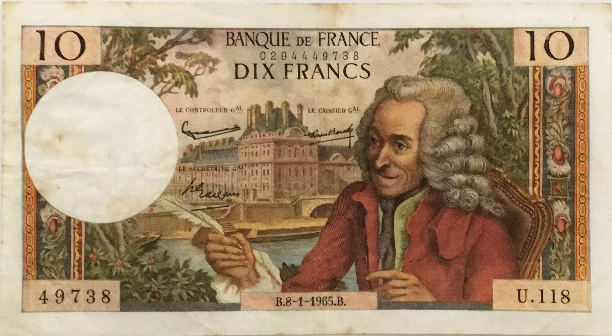 Billet France 10 Francs Voltaire - 08-01-1965 Série U.118 - TTB