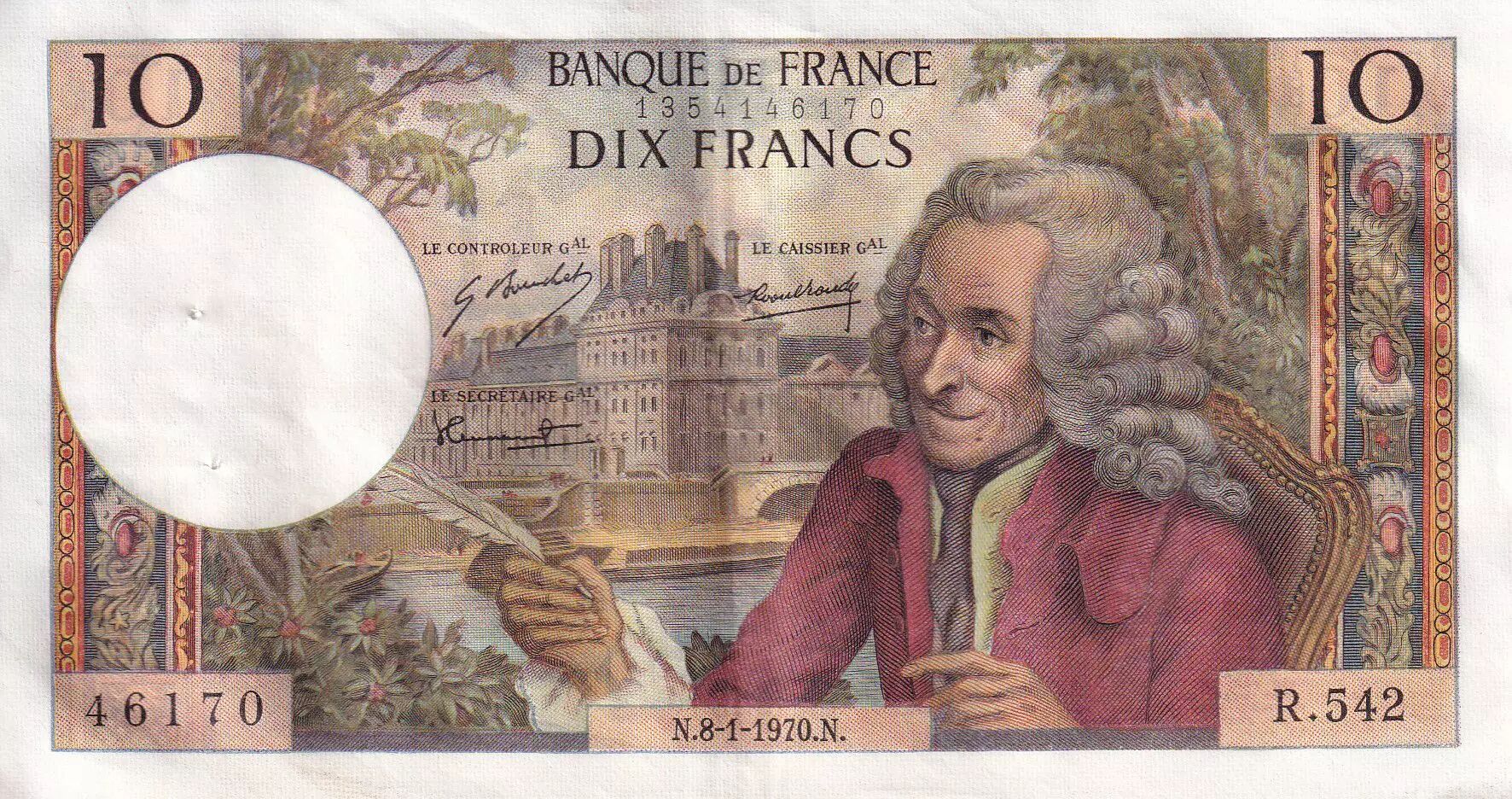 Home > > France 10 Francs - Voltaire - 08-01-1970 - Serial R.542 - XF - P.147