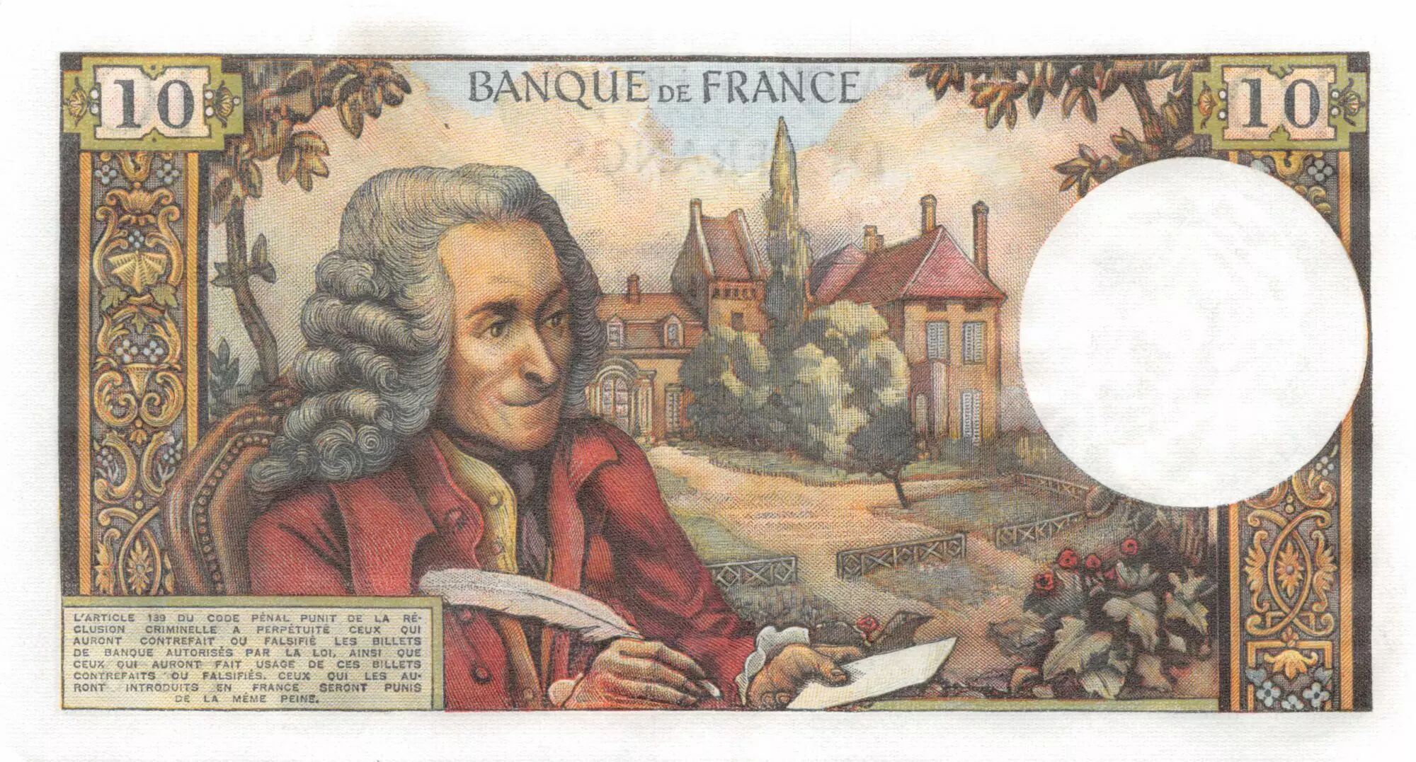 Home > > France 10 Francs Voltaire - 08-01-1971 Serial F.650 - AU