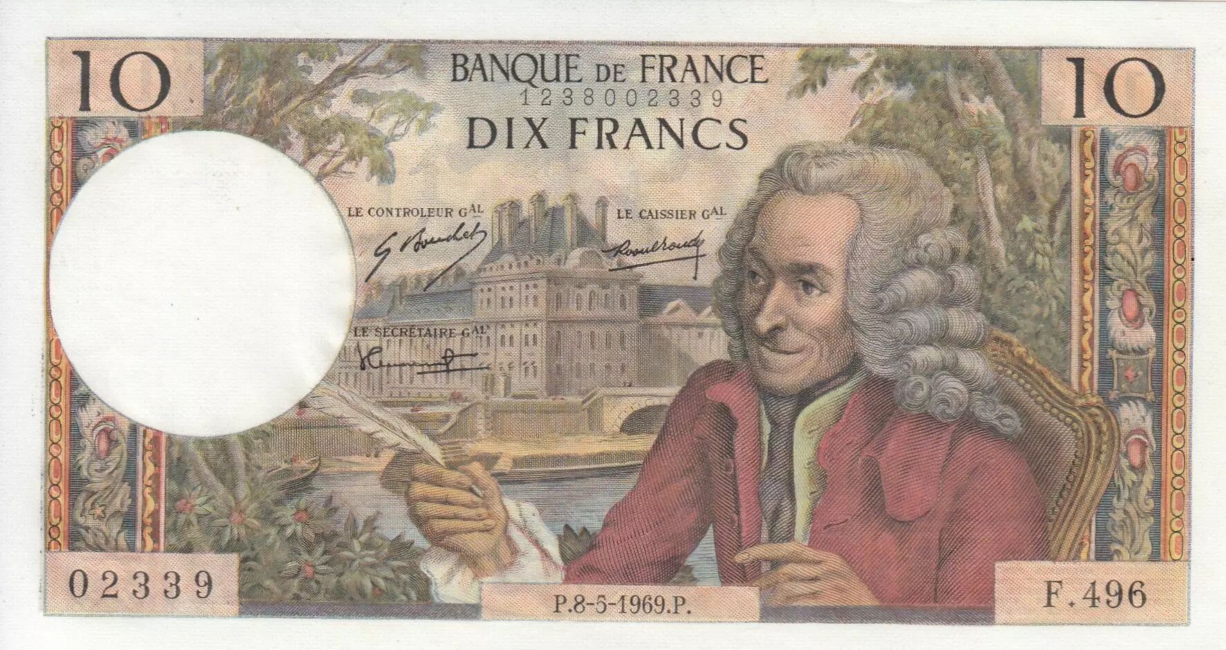 Accueil > Archivage > archivage-Billets Français > France 10 Francs - Voltaire - 08-05-1969 - Série F.496