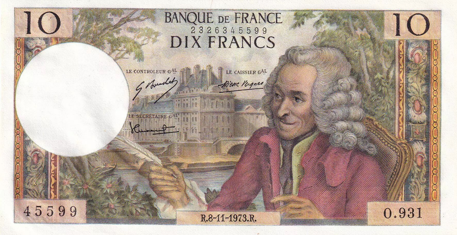 Home > > France 10 Francs - Voltaire - 08-11-1973 - Serial O.931 - P.147