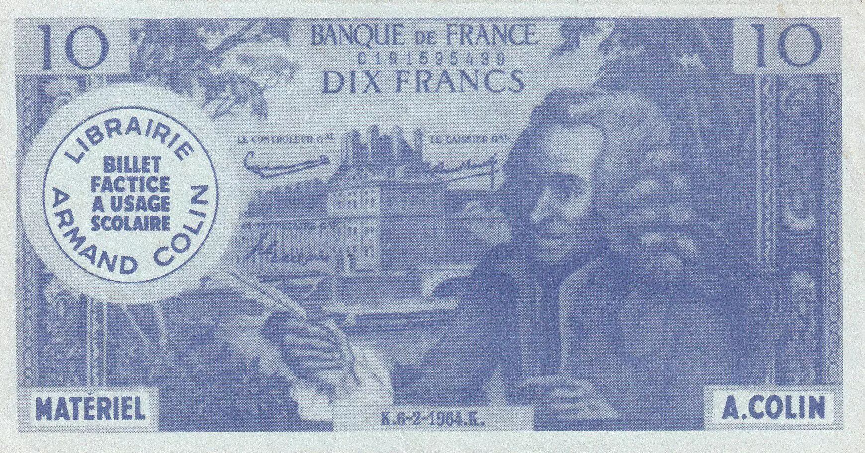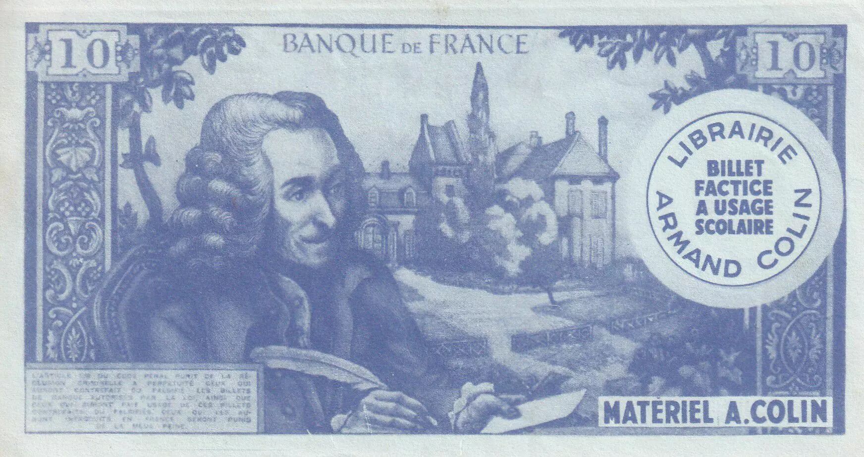 Accueil > Archivage > France 10 Francs - Voltaire - Billet scolaire - 1964