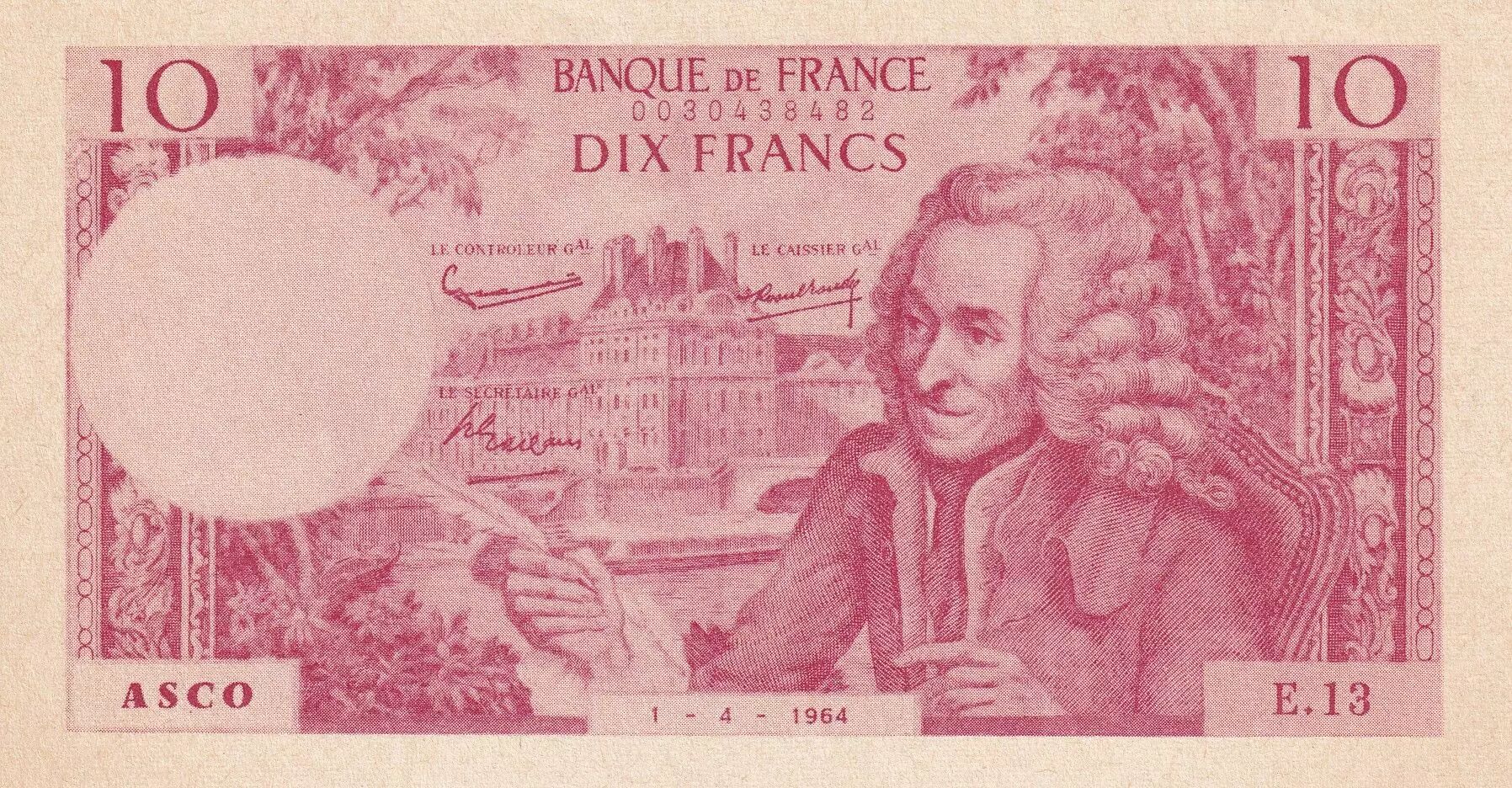 Billet France 10 Francs - Voltaire - Billet scolaire - 1964