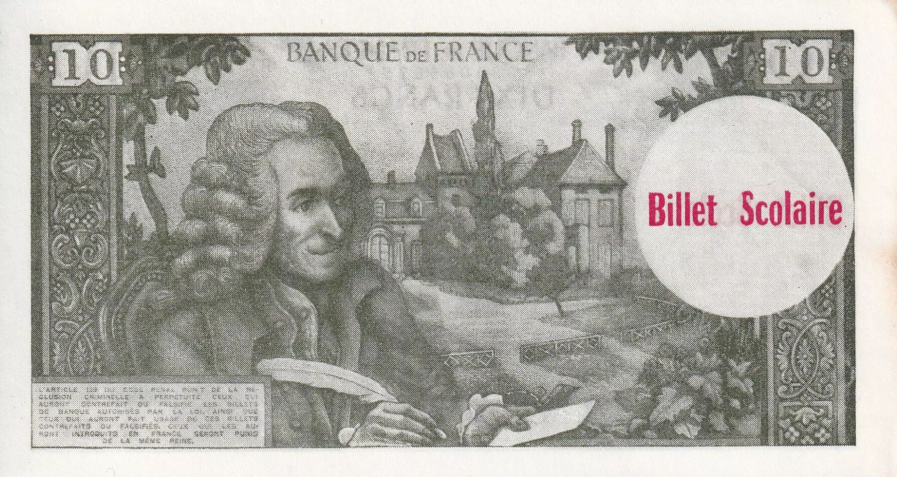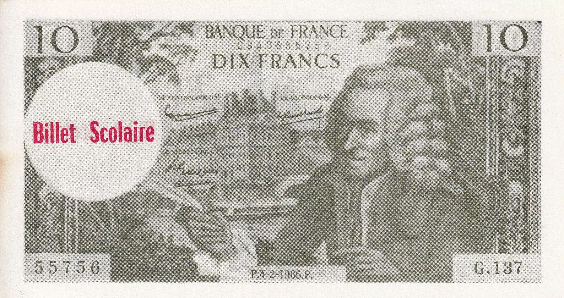 Billet France 10 Francs - Voltaire - Billet scolaire - 1965