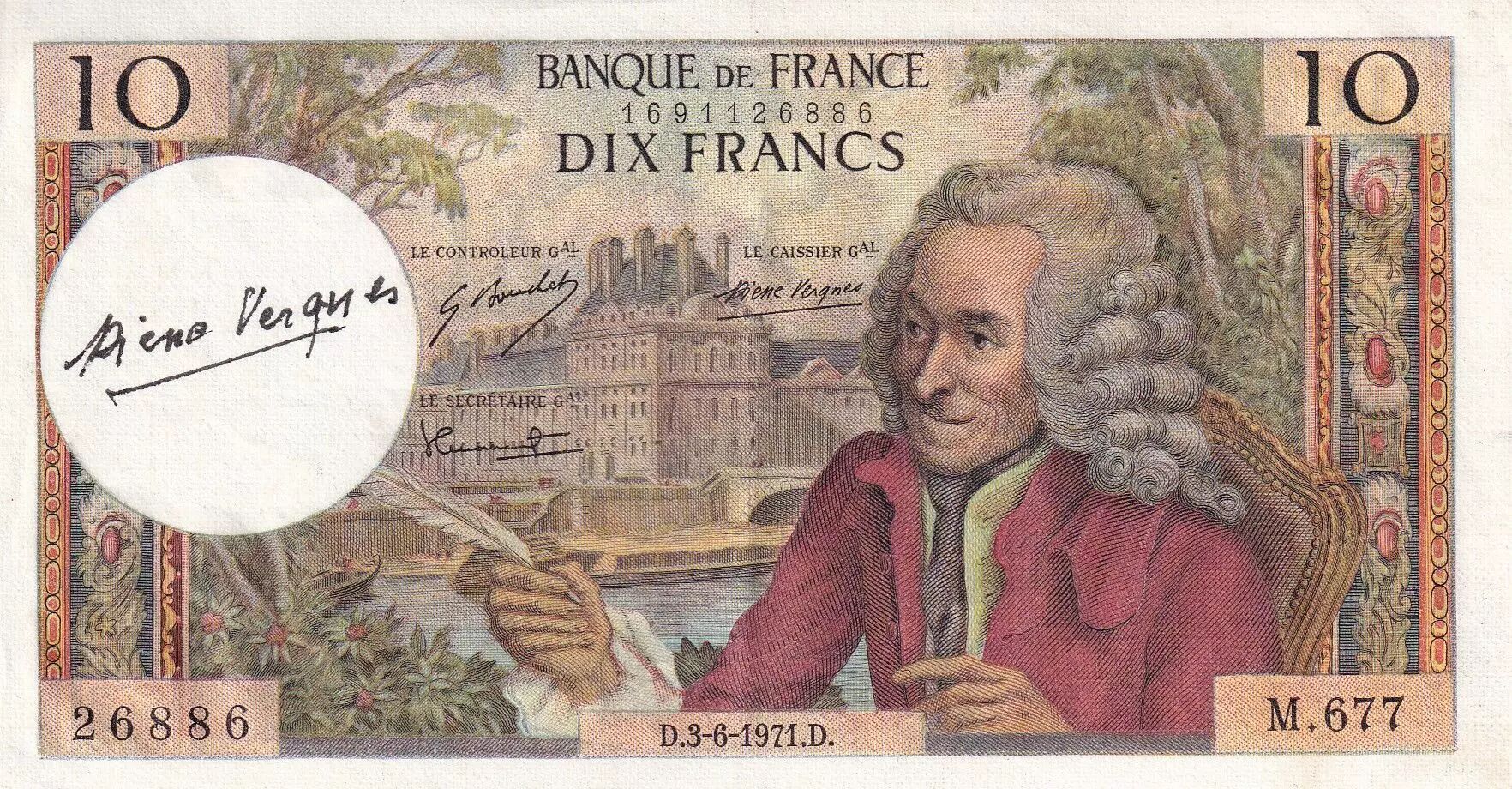 Home > > France 10 Francs - Voltaire - Sign Vergnes - 03-06-1971 - Serial M.677 - P.147