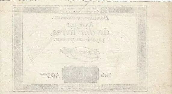 Banknote France 10 Livres Black - Watermark Fleur de Lys - (16-12-1791) - Sign. Taisaud - Serial 503