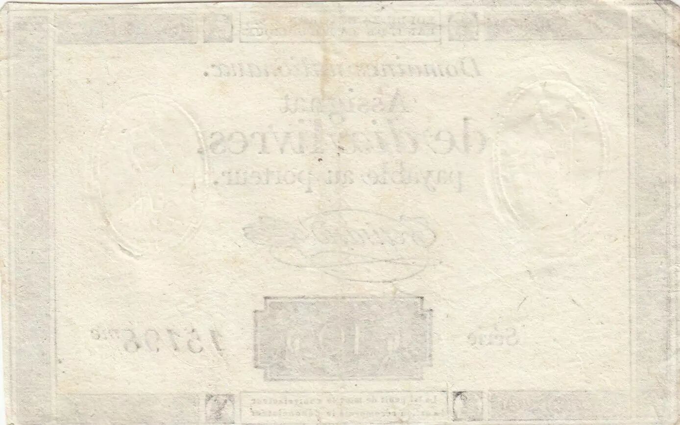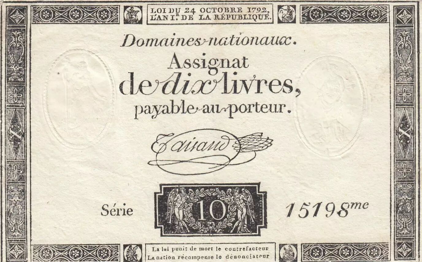 Billet France 10 Livres - Filigrane République - Sign. Taisaud - 24-10-1792 - Série 15198