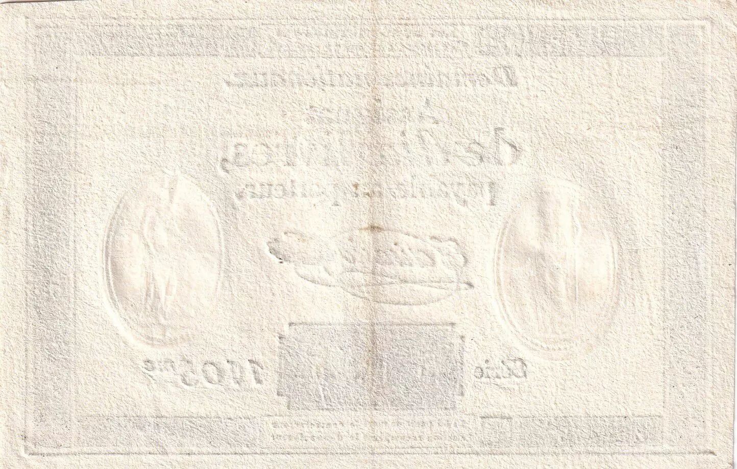 Accueil > Archivage > France 10 Livres Noir - Filigrane Fleur de Lys - (16-12-1791) - Sign. Taisaud - Série 1105 - L.146