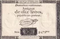 Billet France 10 Livres Noir - Filigrane Fleur de Lys - (24-10-1792) - Sign. Taisaud - Série 2479 - L.161a