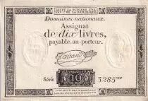 Billet France 10 Livres Noir - Filigrane Fleur de Lys - (24-10-1792) - Sign. Taisaud - Série 3285 - L.161a