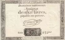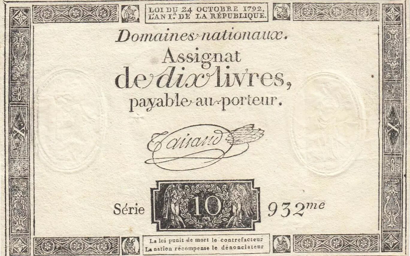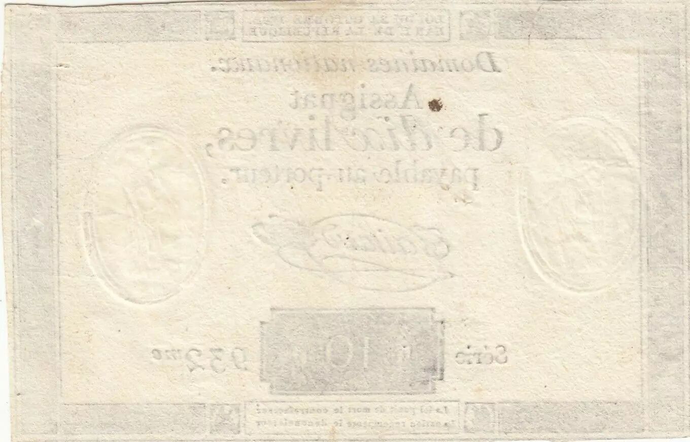 Banknote France 10 Livres - Watermark Fleur de Lys - 24-10-1792 - Sign. Taisaud - Serial 932
