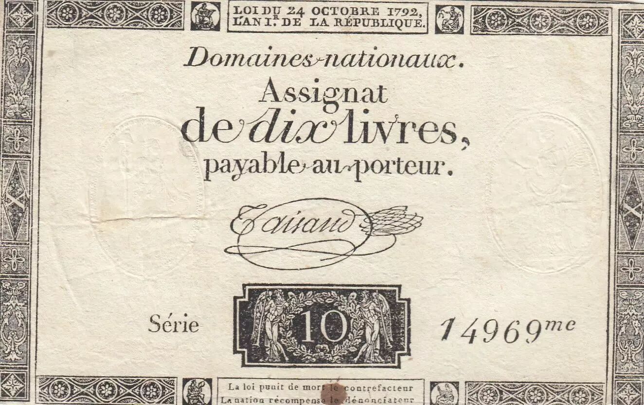 Banknote France 10 Livres - Watermark Republique - French Revolution - 24-10-1792 - Serial 14969