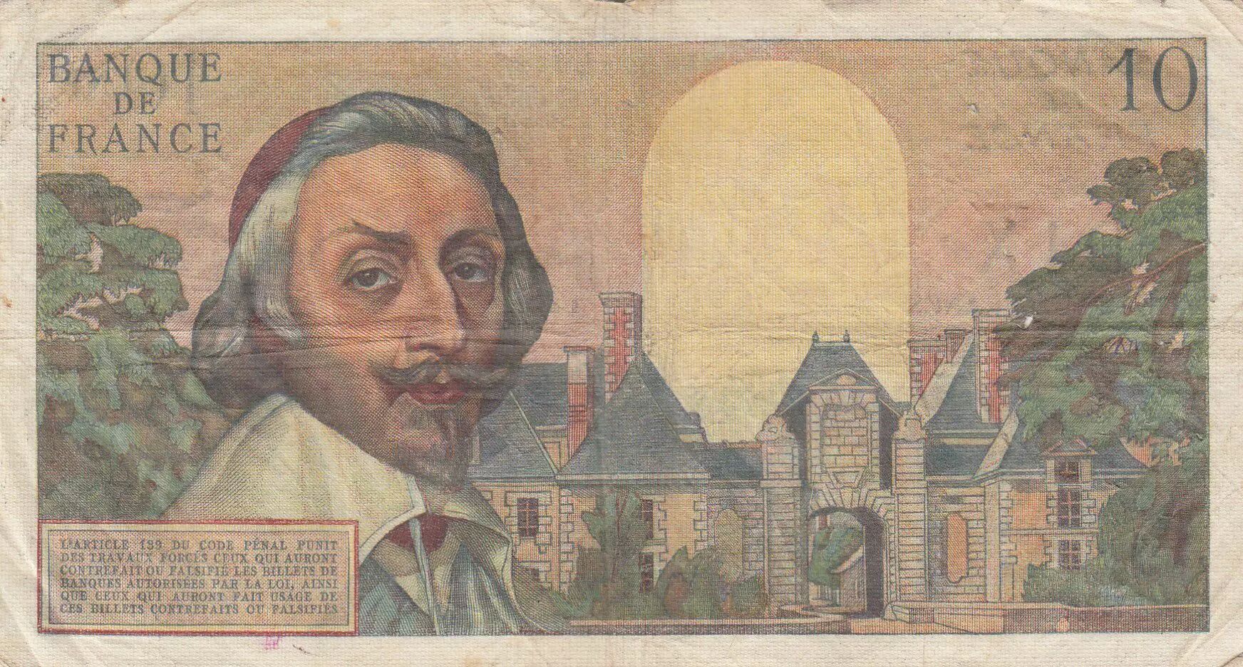 Banknote France 10 NF Richelieu - 01-02-1962 Serial T.200- F to VF