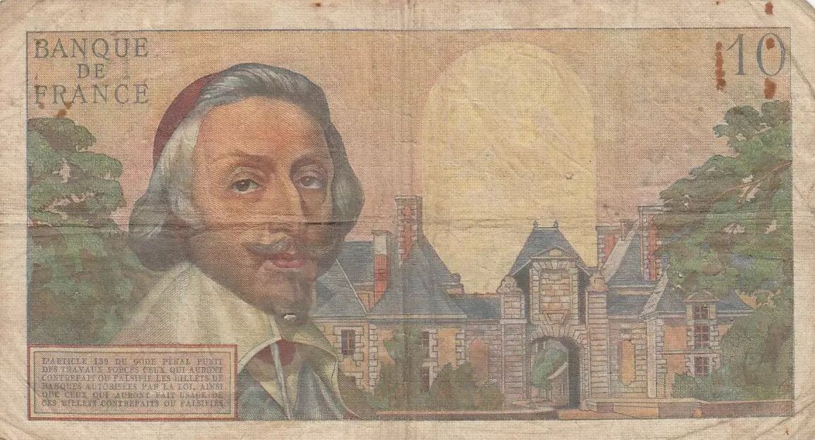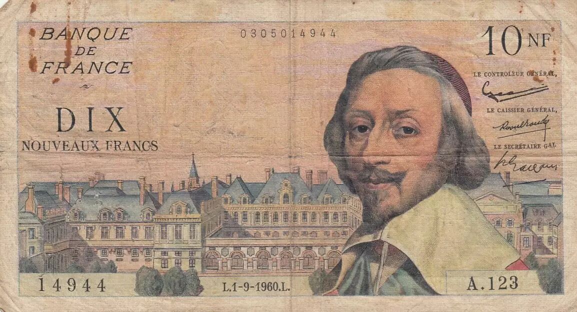 Billet France 10 NF Richelieu - 01-09-1960 - Série A.123