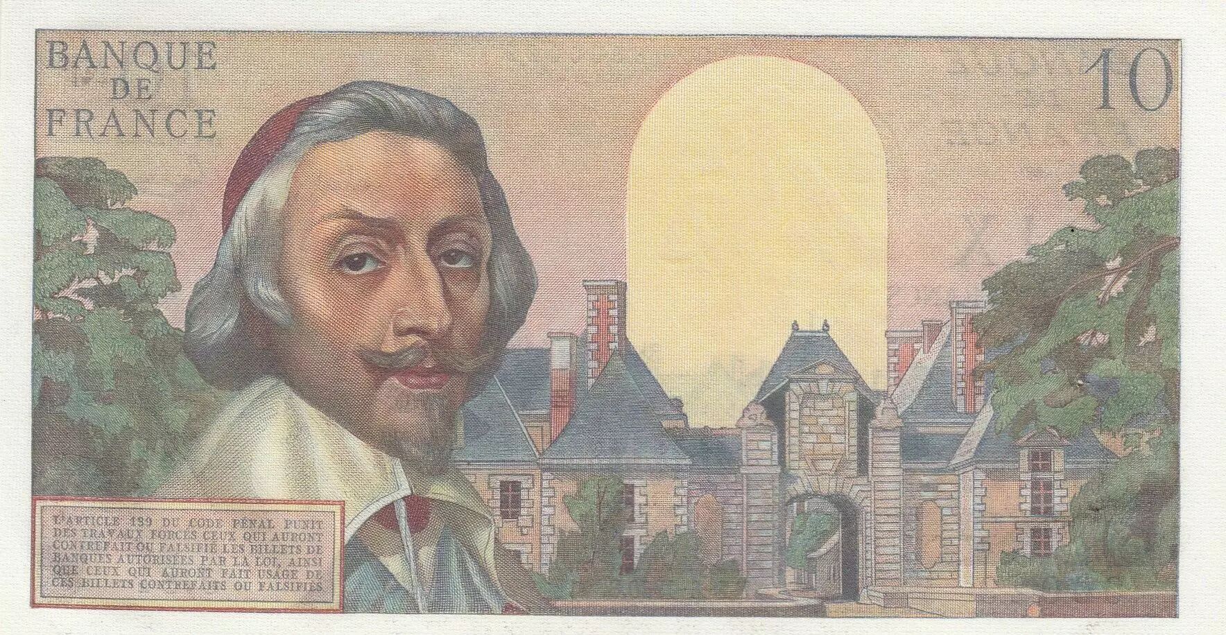 Billet France 10 NF - Richelieu - 02-06-1960 - Série J.84 - Petit Numéro