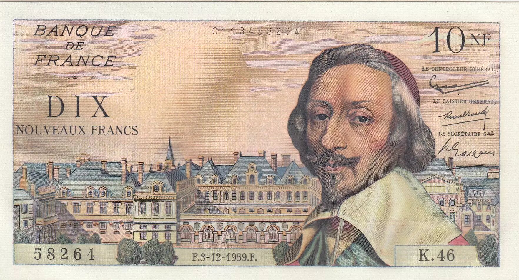 Banknote France 10 NF - Richelieu - 03-12-1959 - Serial K.46