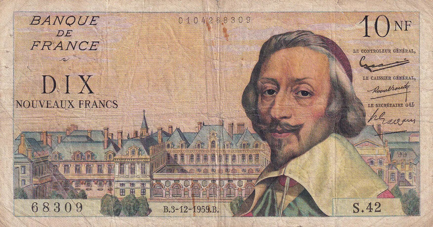Banknote France 10 NF - Richelieu - 03-12-1959 - Serial S.42 - P.142