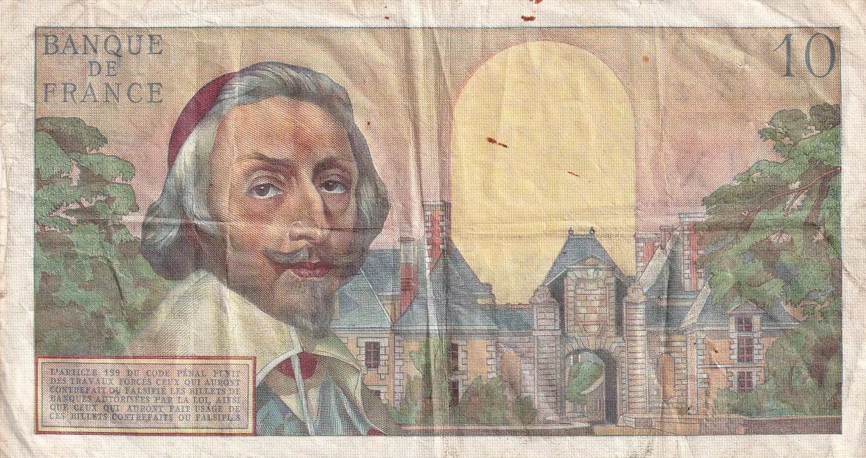Banknote France 10 NF - Richelieu - 04-02-1960 - Serial B.52 - F to VF - P.142