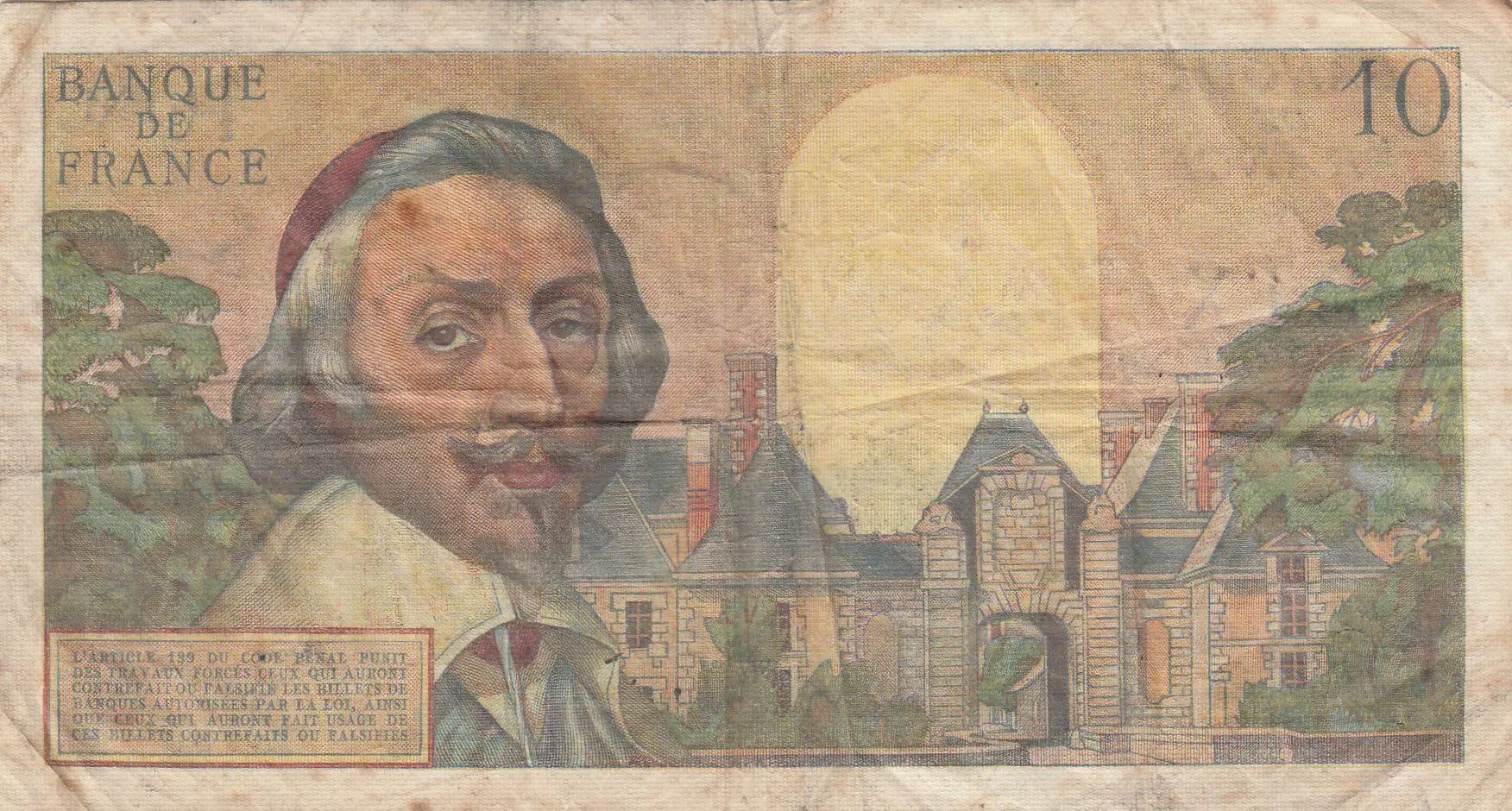 Banknote France 10 NF Richelieu - 07-12-1961 Serial S.187 - F to VF
