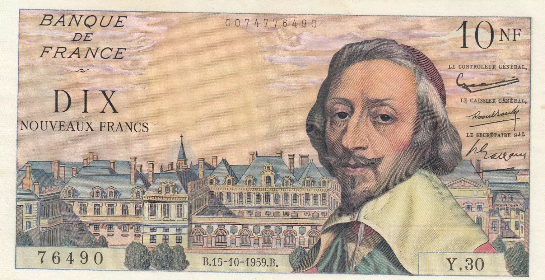 Banknote France 10 NF - Richelieu - 15-10-1959 - Serial Y.30