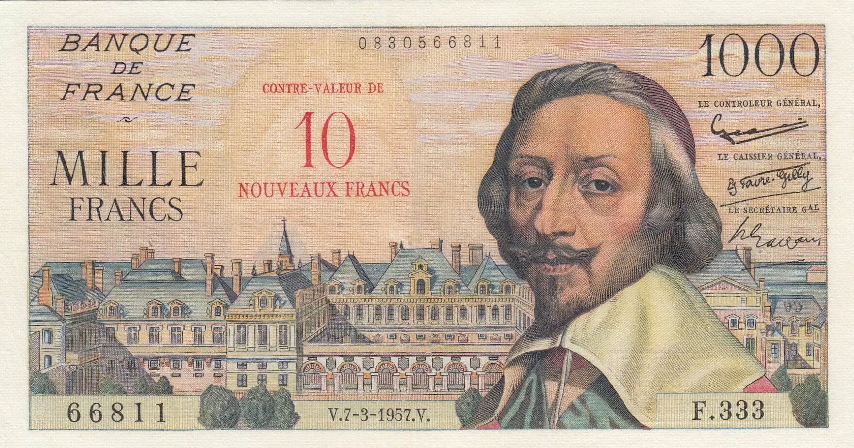 Accueil > Archivage > France 10 NF sur 1000 Francs - Richelieu - 1957 - Série F.333 - SUP - F.53.01