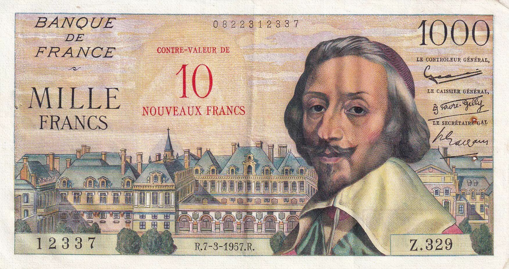 Accueil > Archivage > France 10 NF sur 1000 Francs - Richelieu - 1957 - Série Z.329 - F.53.01