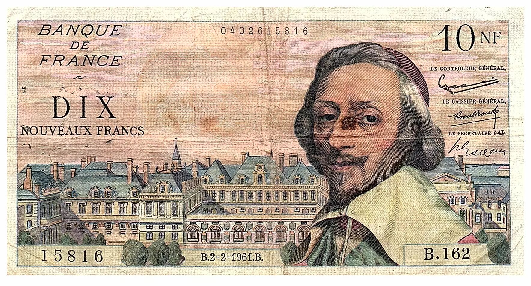 Home > > France 10 Nouveaux Francs Richelieu - 02.02.1961 - Serial B.162 - Fay.57.14