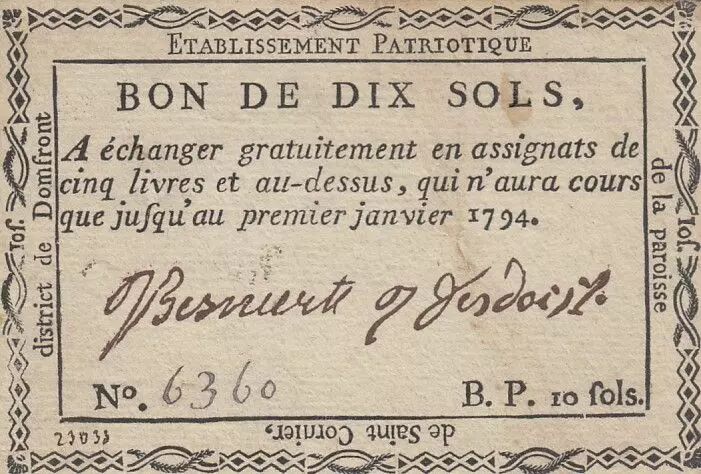 Banknote France 10 sols - Orne - Saint Cornier patriotic establishment - 1794