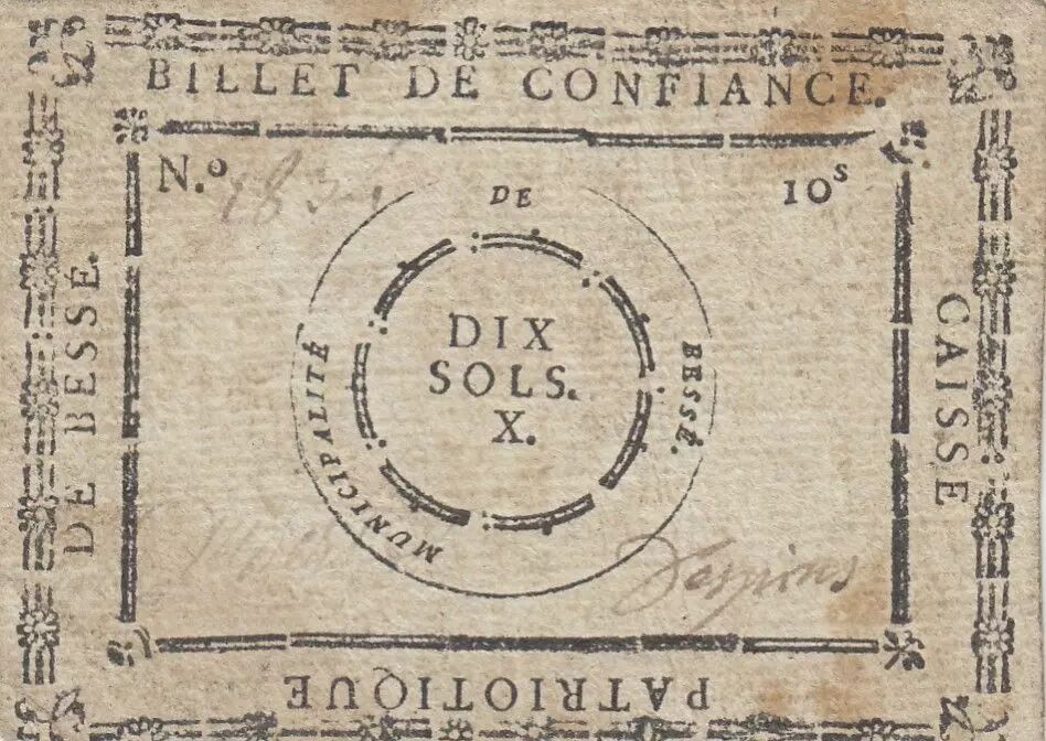 Accueil > Billets Français > Billets de Nécessités (1789-1945) > Billets de Confiance 1789-1793 > France 10 Sols - Sarthe - Caisse patriotique de Bessé - 1792 - Non retrouvé