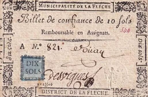 Billet France 10 Sols - Sarthe - Municipalité de la Flèche - Série A - 1791