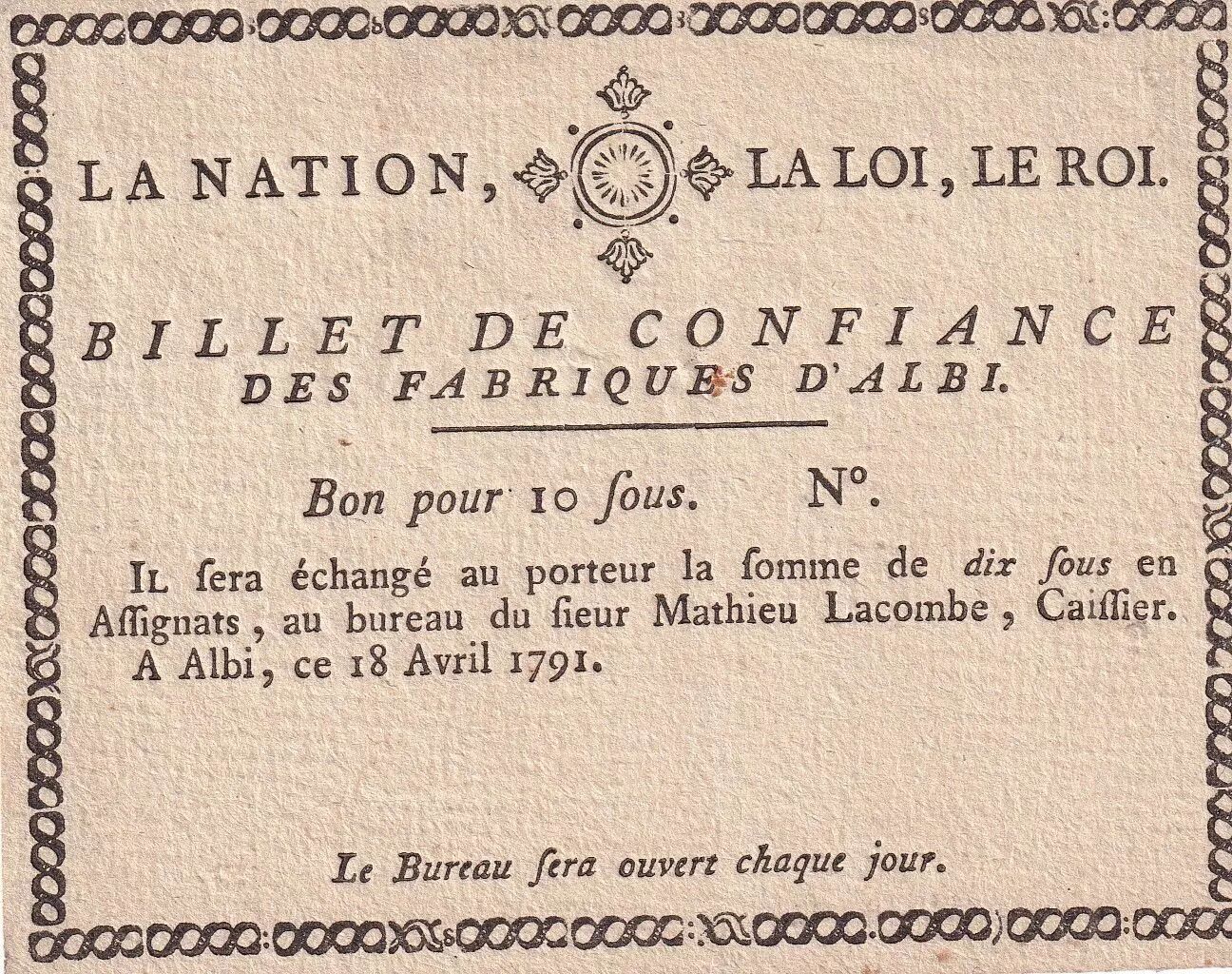 Banknote France 10 Sous - Billet de confiance - 1791 - Fabriques d'Albi