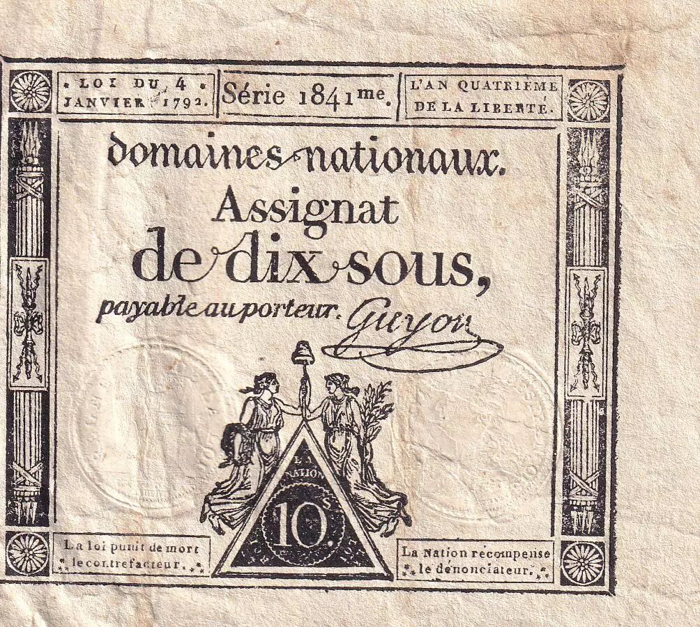 Billet France 10 Sous - Femmes, bonnet frigien (04-01-1792) - Sign. Guyon - Série 1841 - L.148