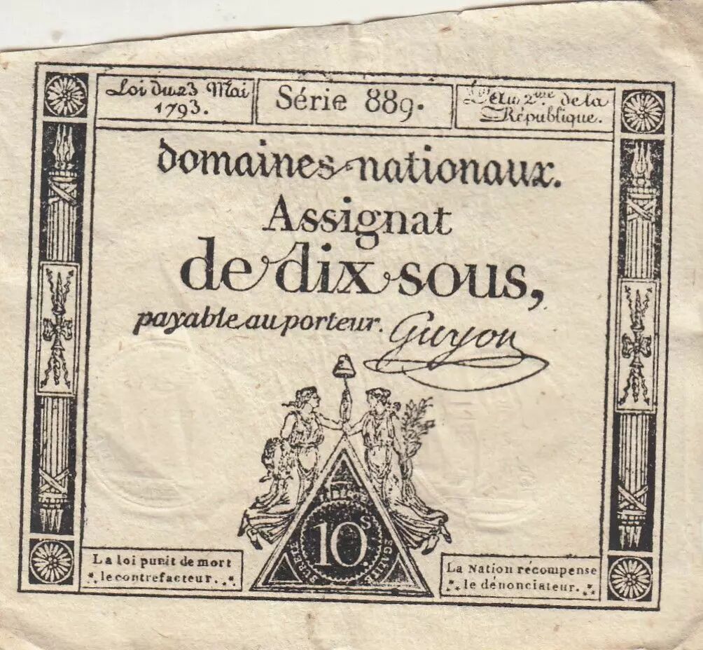 Billet France 10 Sous - Femmes - bonnet frigien - 23-05-1793 - Sign. Guyon - Série 889