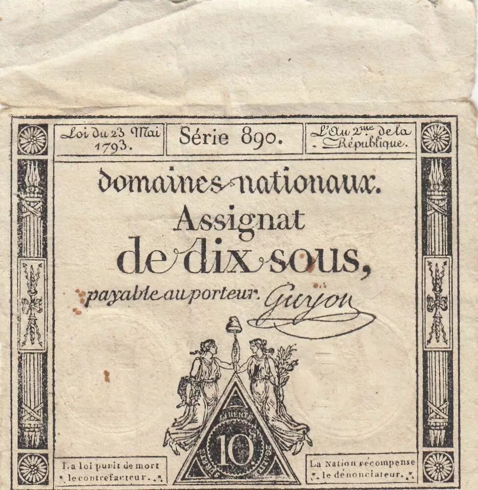 Billet France 10 Sous - Femmes - bonnet frigien - 23-05-1793 - Sign. Guyon - Série 890