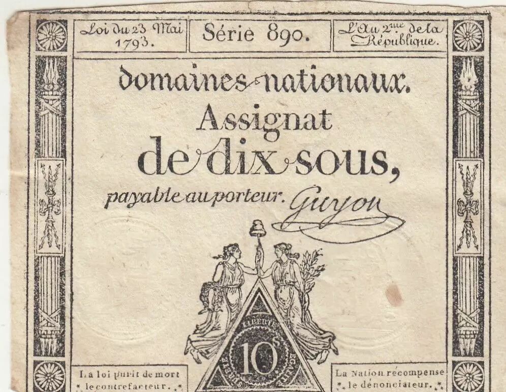 Billet France 10 Sous - Femmes - bonnet frigien - 23-05-1793 - Sign. Guyon - Série 890