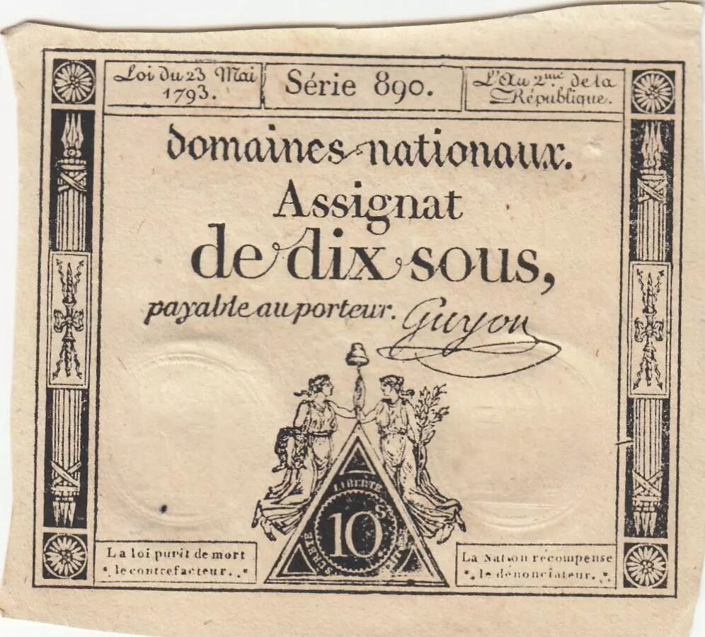 Billet France 10 Sous - Femmes - bonnet frigien - 23-05-1793 - Sign. Guyon - Série 890