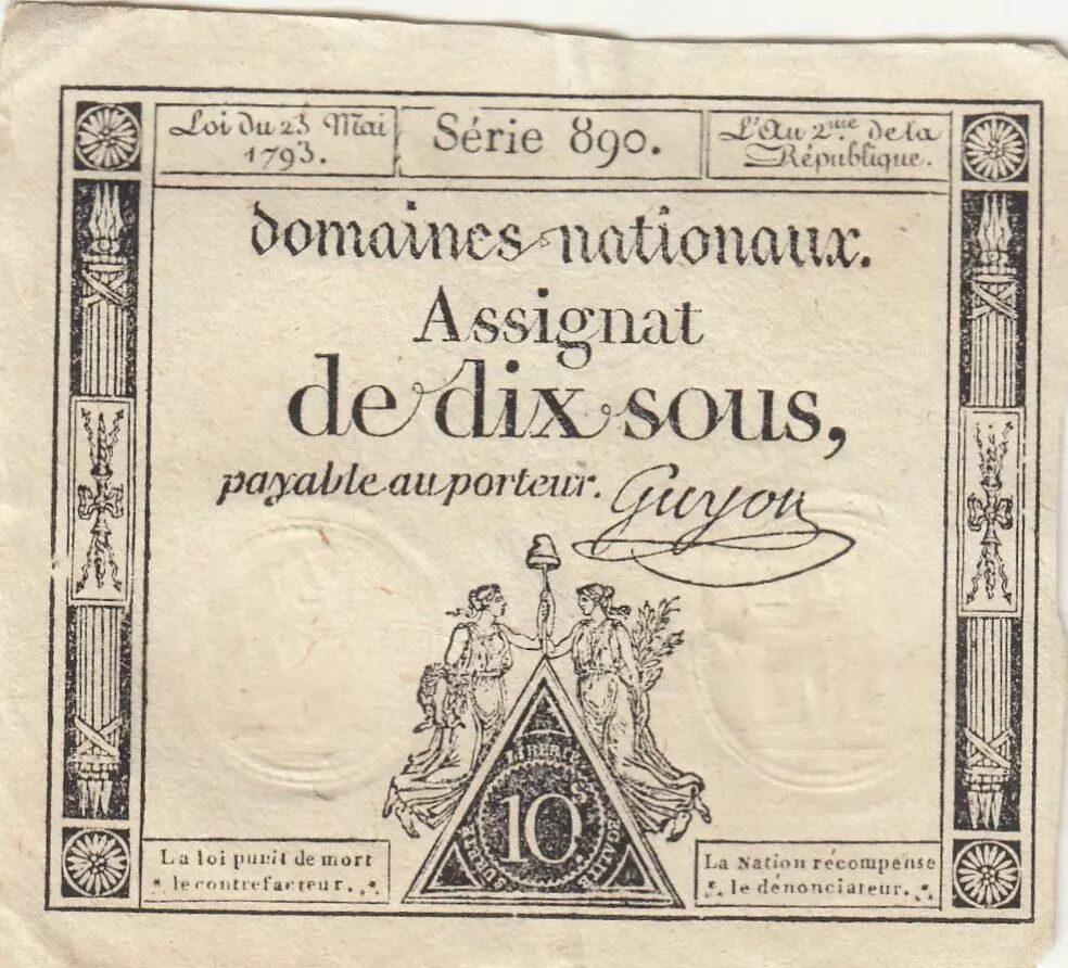 Billet France 10 Sous - Femmes - bonnet frigien - 23-05-1793 - Sign. Guyon - Série 890