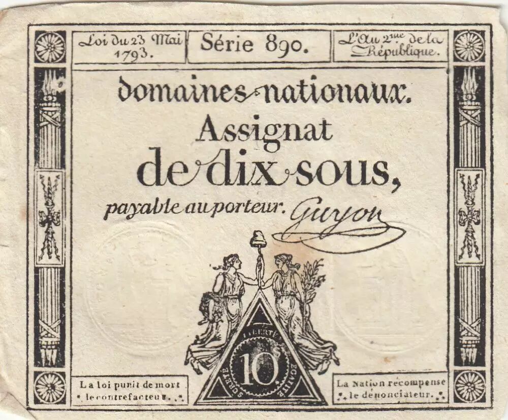 Billet France 10 Sous - Femmes - bonnet frigien - 23-05-1793 - Sign. Guyon - Série 890