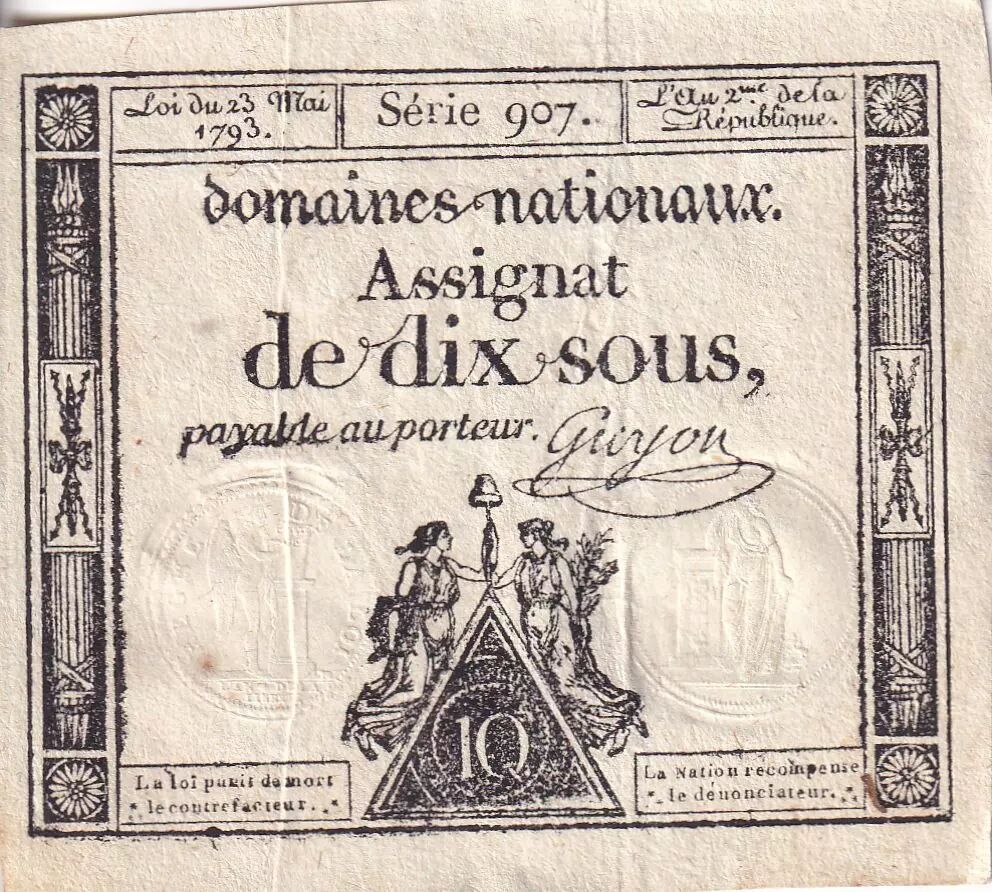 Billet France 10 Sous - Femmes, bonnet frigien (23-05-1793) - Sign. Guyon - Série 907 - L.165