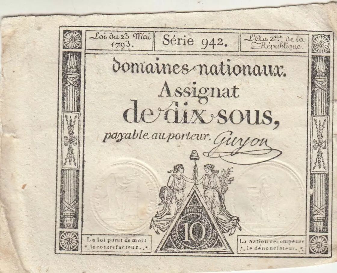 Billet France 10 Sous - Femmes - bonnet frigien - 23-05-1793 - Sign. Guyon - Série 942