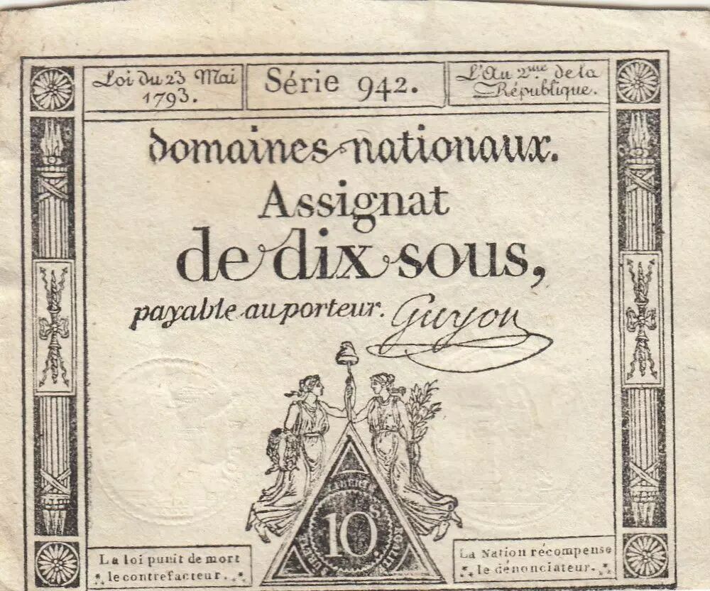 Billet France 10 Sous - Femmes - bonnet frigien - 23-05-1793 - Sign. Guyon - Série 942