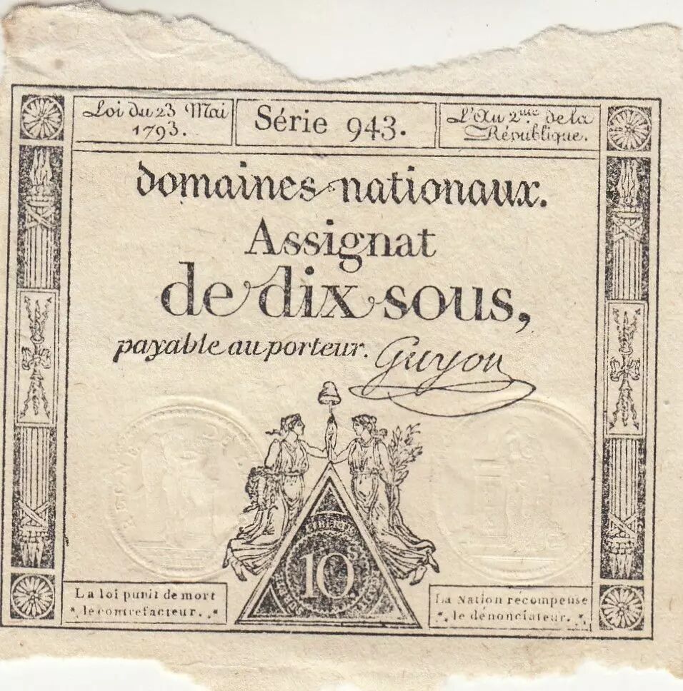 Billet France 10 Sous - Femmes - bonnet frigien - 23-05-1793 - Sign. Guyon - Série 943