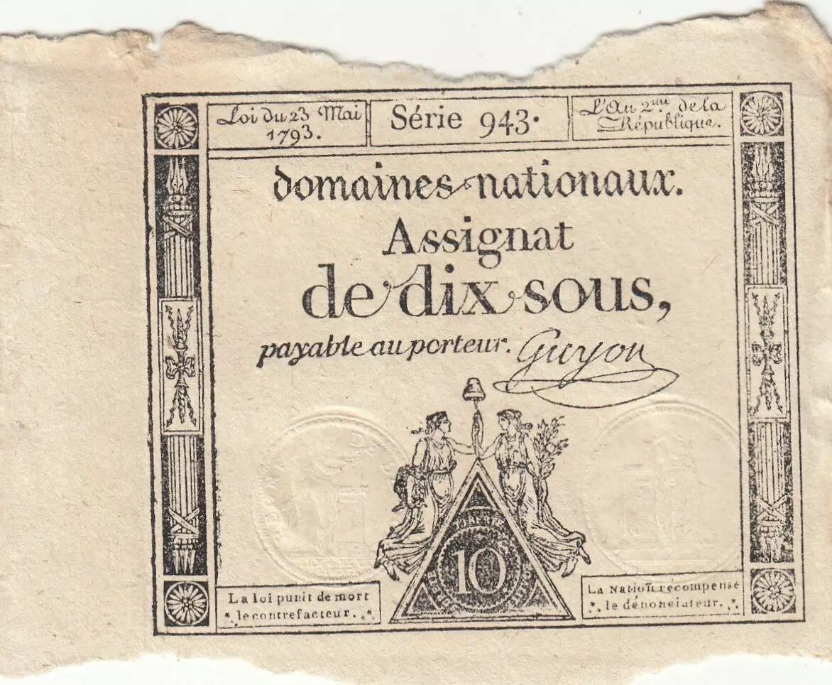 Billet France 10 Sous - Femmes - bonnet frigien - 23-05-1793 - Sign. Guyon - Série 943